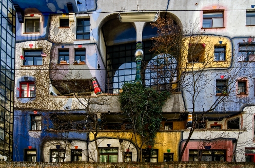 Будинок Хундертвассера, побудований в середині 80-х рр. ХХ ст. Це наче виклик традиційній архітектурі, це нова філософія міських споруд. Насамперед будинок привертає увагу барвистим фасадом, який гармонійно поєднується з пишним рослинним світом на ньому, включаючи й дерева. Вікна тут різних форм, однакові можливі лише в концентраційних таборах, вважав митець. Поверхні підлог та стін не є рівними, штукатурка нагадує піщані дюни. Всі кути в будинку заокруглені – підвіконня, одвірки. Виникає асоціативний ряд – лісові стежини, пагорби, морські хвилі і навіть гроти. Архітектор використовував для будівництва лише природні матеріали, адже був завзятим ідейним екологом. Хундертвассер вважав цей витвір будинком своєї душі і вершиною своєї архітектурної діяльності. Навіть присвятив йому вірш.