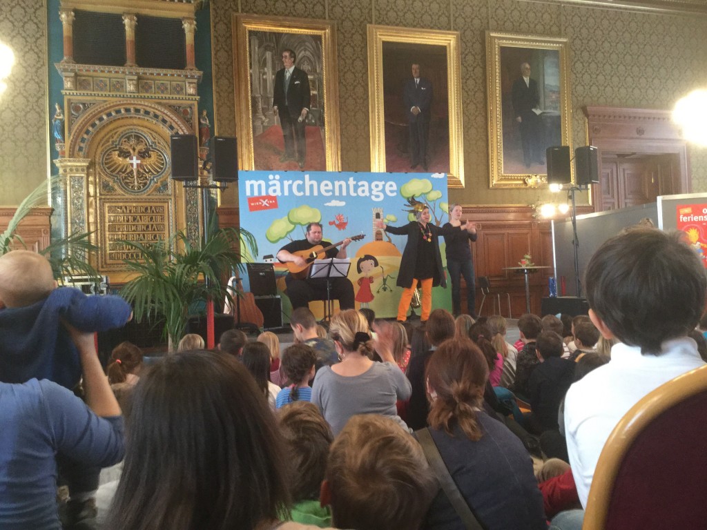 Дні казки у Відні — як зрозуміла, гарна багаторічна традиція. Участь у заході можуть взяти сім’ї, в яких є діти до 8 років. То ж ми довго не думаючи, як тільки про нього дізнались від знайомих, теж чкурнули собі на Märchentage (дні казки). Було цікаво: по-перше, подивитися наскільки Устинка (у рік і 9,5 міс.) готова до подібних свят для малюків (хоча сумнівів і не було), а по-друге, глянути як такі свята проводяться.