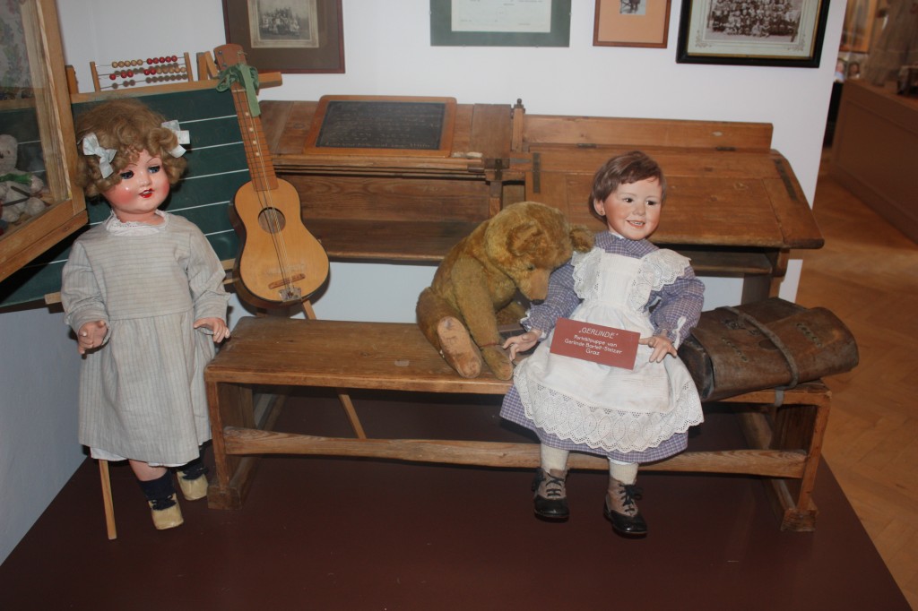 Експозиційні ляльки розміщені цікаво і невимушено. Невеличкі чотири кімнати музею не лише знайомлять відвідувачів з великою кількістю ляльок минулих століть, а й передають побут тогочасного лялькового світу. Столові сервізи, кухоньки, шафи для одягу, будиночки, візочки для лялькових немовлят – все це і трохи більше мали у своїх власності ляльки та їхні маленькі господиньки. Щодо самих ляльок, то вони тут від пупсів до росту семирічної дитини, різних рас і національностей. Є і портретні ляльки (одну, як мінімум, зустріла таку – порцелянова близнючка якоїсь дівчинки з Грацу, яка датована, якщо не помиляюсь, початком ХХ століття).