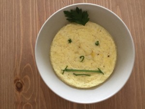 Взбити яйце (вручну чи за допомогою сучасних електричних помічників). Додати молока. Знову взбити. Ледь посолити. Мисочку чи горнятко (невеликого діаметру і достатньої для росту омлету висоти) змастити маслом, влити туди нашу суміш і поставити в пароварку на 15 хв. (радять різні джерела, та задля власного спокою наразі вмикаю на 20 хв. :))