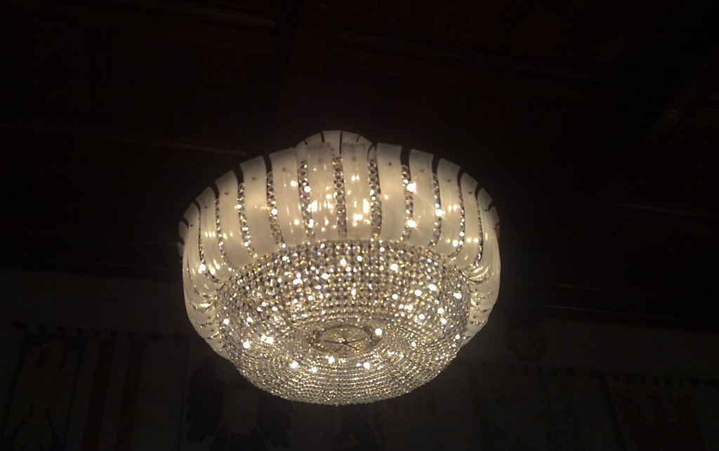 Особливе місце для гордості Rathaus займає величезна люстра у залі засідань, яка у свій час побувала на виставці у Франції. Хоч і важко було її транспортувати (через величезний розмір навіть із зали так просто її не винести, не розібравши шматок будівлі, годі говорити про сотні кілометрів у тодішні часи), але люстра успішно покрасувалася у французькій столиці й неушкодженою повернулася додому.