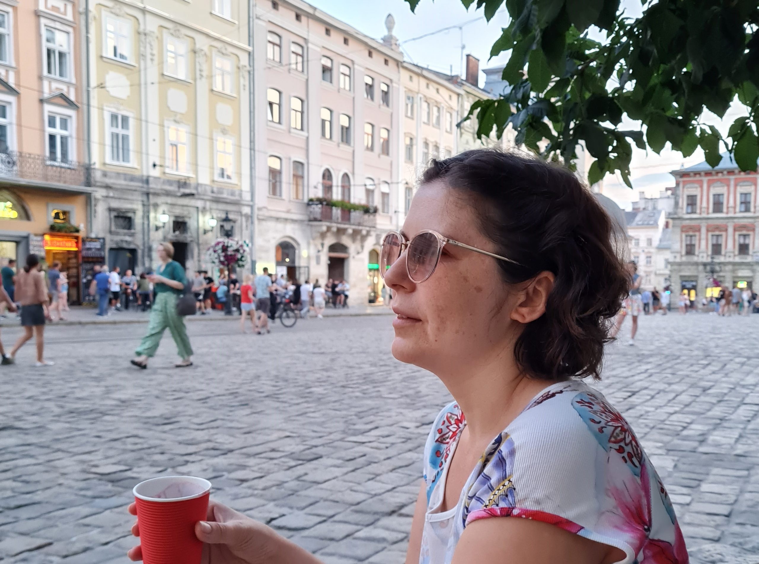 Ich finde diesen Platz sehr romantisch und ruhig. Heute besuchen ihn viele Touristen, gehen viele verliebte Paar spazieren, tanzen Tango und trinken Kaffee. Dort gibt es viele gemütliche Kaffees und Restaurants. Mir gefällt Ploscha Rynok sehr!